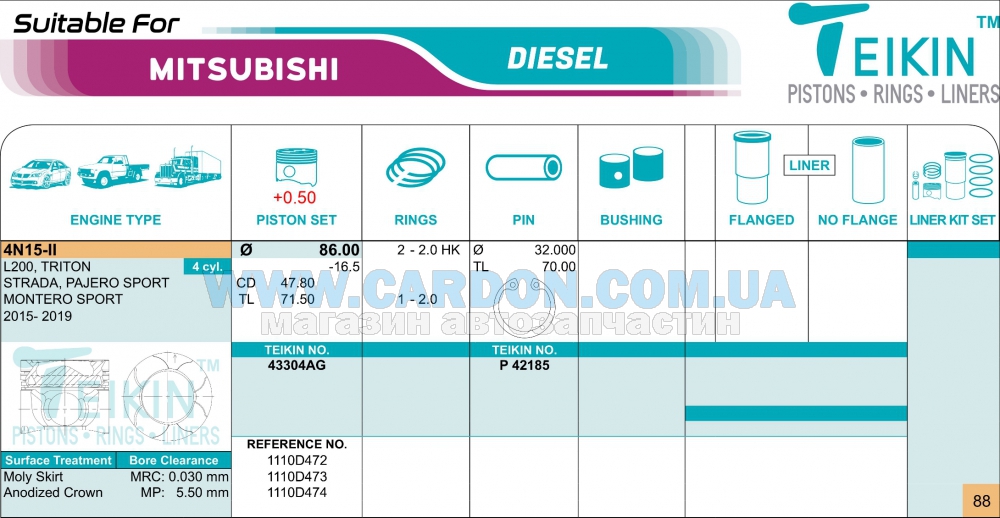 | 1******5 | Piston & pin assy | MITSUBISHI | 4 | 21.03.2026 | 21 | 3928 |