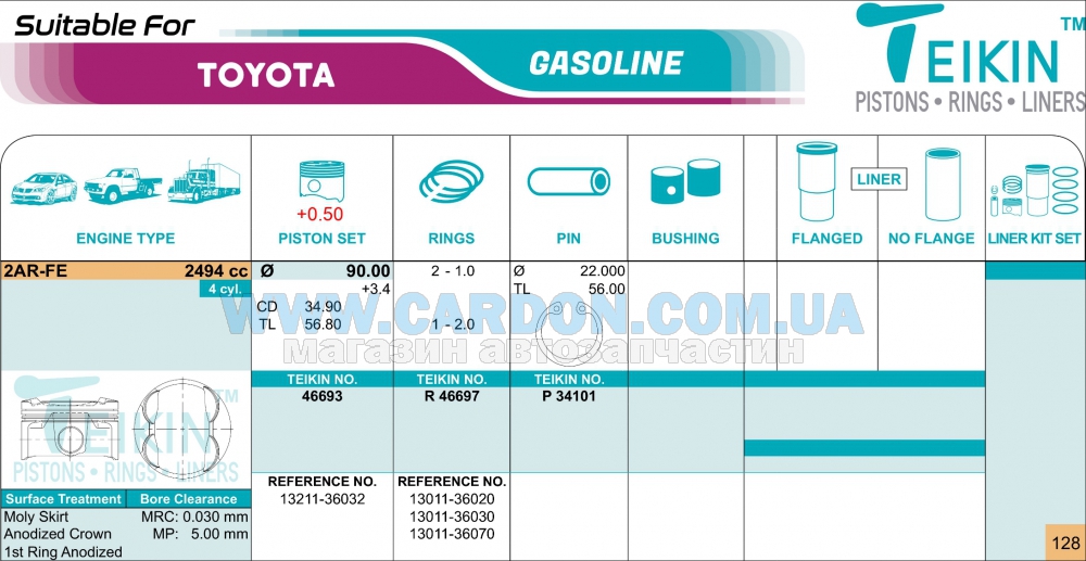 Поршни ремонт +0.50MM (к-кт на мотор) 46693050 - TEIKIN TOYOTA 2AR-FE CAMRY, LEXUS ES - оригінальні номери та аналоги