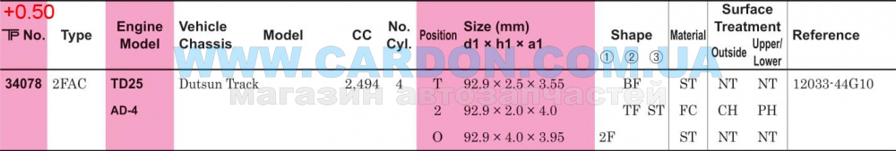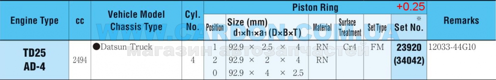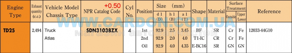 Кольца nissano41037 urvan (87.10- )td25 0,5 92,9mm