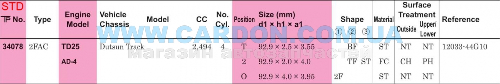 Кольца nissano41037. urvan (87.10- )td25 std 92,9m