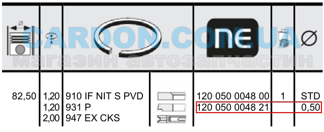 Кільця поршневі vag 82,50 1.8/2.0 tfsi (1.2/1.2/2) |