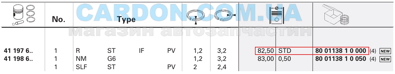 Кільця поршневі, комплект на 1 циліндр vw 82,500 0 |