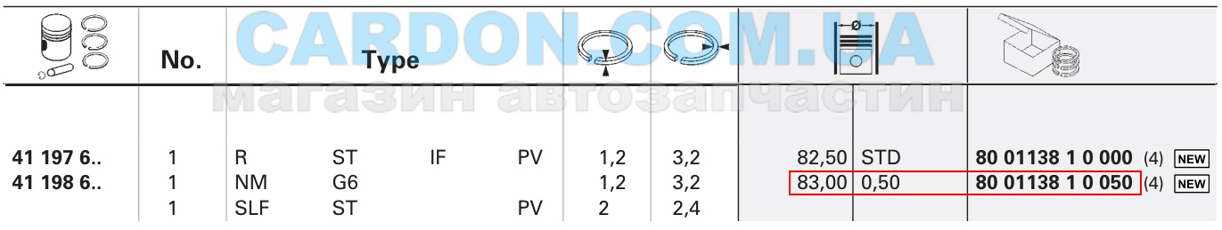 Кiльця поршневi (1cyl) audi/vw 82.50 1.8/2.0 tfsi |