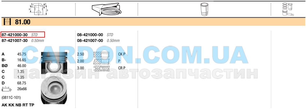 Поршень vw crafter 2.5tdi 06-13 (81.01mm/std)